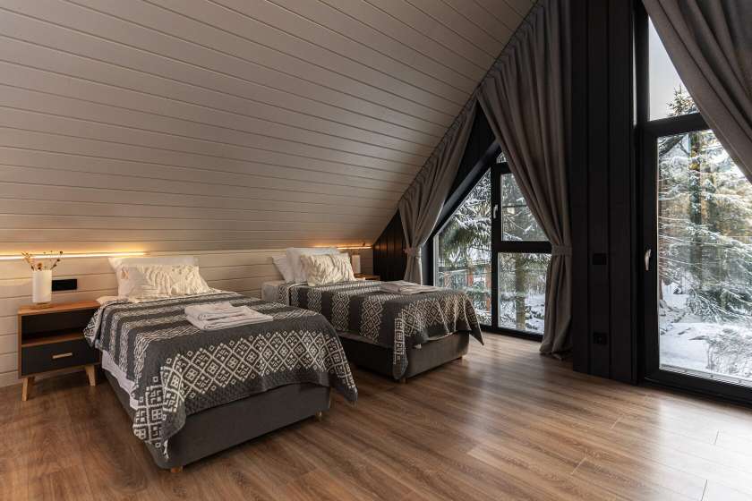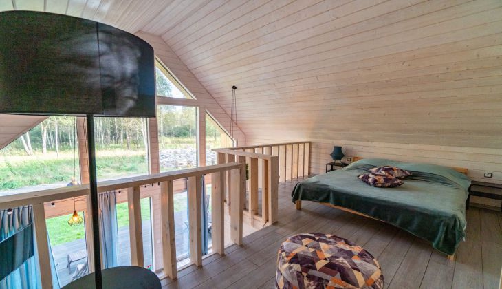 BARN 25 — дом для семьи из 2х человек. Дом, в котором есть всё, и нет ничего лишнего. Отдельная спальня на первом этаже, санузел. Кухня-гостиная с высоким потолком и панорамным остеклением. Санузел с душевой кабиной. Лофт-антресоль на 2 спальных места и зона хранения вещей. По сравнению с популярным BARN-50 мы переработали задний фасад и лестницу, увеличили спальню.